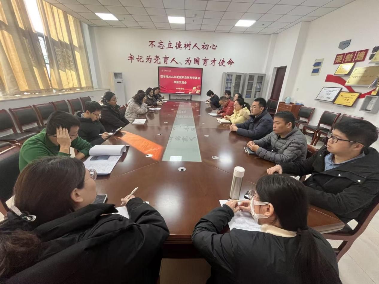 为扎实推进2026年度国家自然科学基金项目申报工作,切实提升申报书质量与立项成功率,1月7日下午,理学院在科技楼3号楼107会议室召开2026年度国家自然科学基金申报交流会。理学院副院长魏广华和2026年拟申报基金项目的教师参加会议,会议由张慧教授主持。